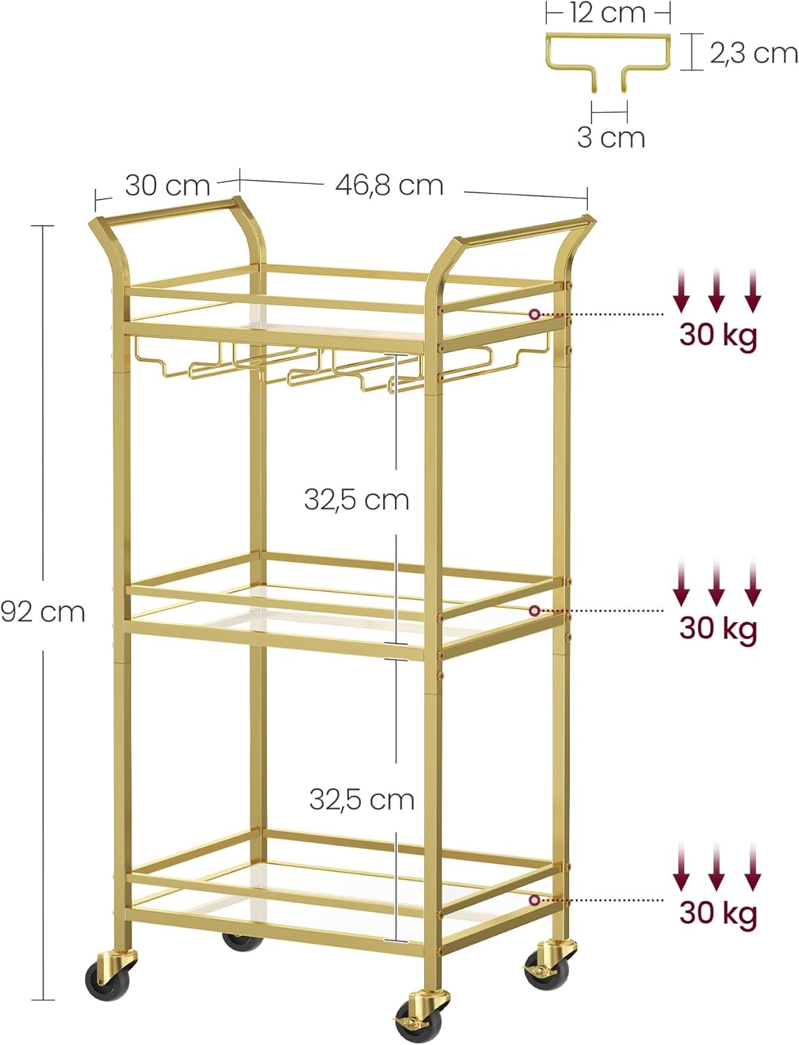 [Sturdy and durable] Made of steel frame and durable, easy to clean glass, this rolling cart is sturdy, stable and durable