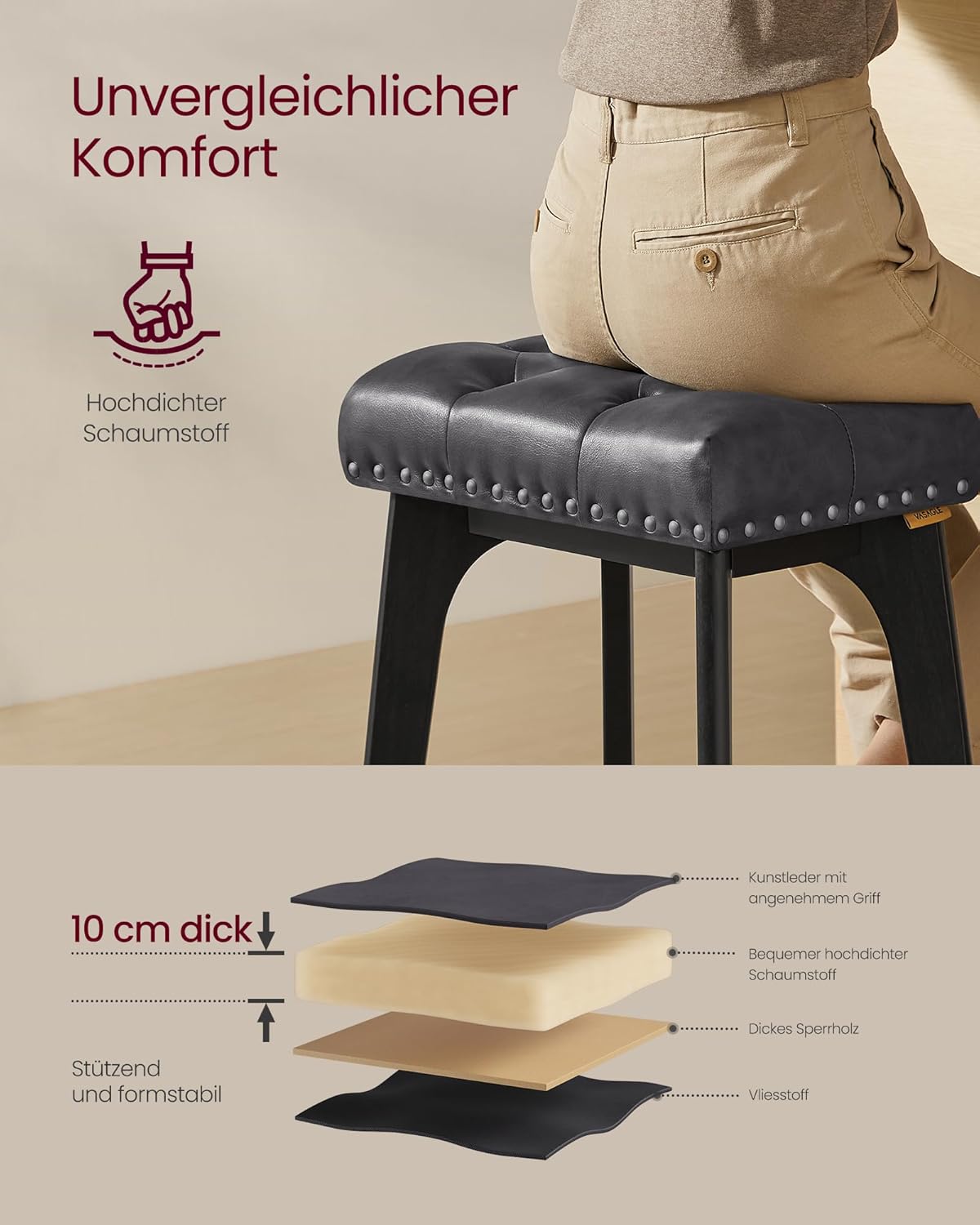 - [Sturdy and Stable] The solid wood legs with adjustable feet ensure stability on slightly uneven floors while protecting your floor from scratches. The kitchen stool is strong enough to hold up to 120 kg