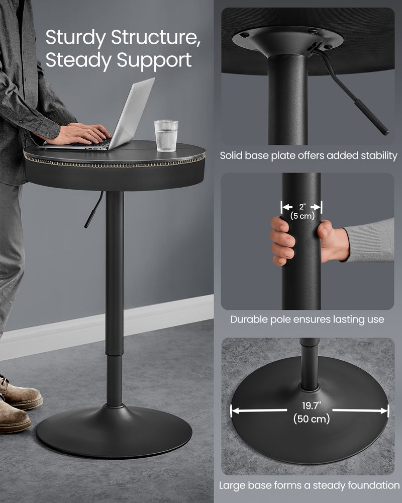 Rock-resistant stability: rely on the robust design of our black bar table with a solid 50 cm base that ensures exceptional stability. A durable, wobble-free foundation for everyday use