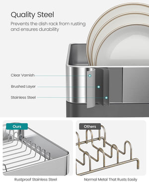 【PREMIUM MATERIAL】Crafted from sturdy stainless steel, this dish drying rack is corrosion-resistant and rustproof. With its sturdy construction, this dish rack can support up to 12 kg, providing reliable support for your dishware