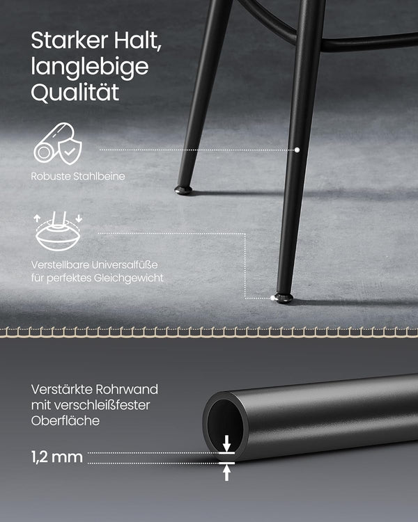 Stable and floor-friendly: The outwardly standing metal legs, which form a rock-solid base, coupled with adjustable universal feet, not only give these stools high stability on uneven floors, but also protect the floor from scratches