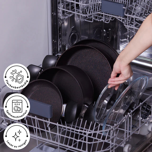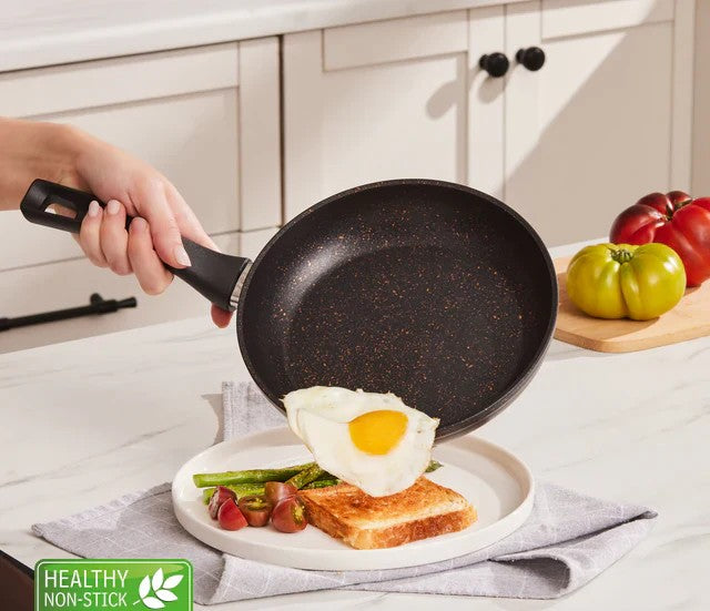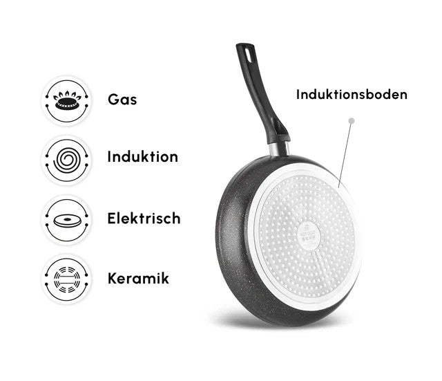 Constructed with ultra-strong biogranit material, each piece offers exceptional non-stick performance, superior scratch resistance, and even heat distribution. Fully compatible with induction cooktops and all other stovetops, it allows for efficient, oil-free cooking with easy cleanup. Whether you're preparing everyday meals or entertaining guests, this 15-piece set gives you all the essentials in one beautifully designed collection.