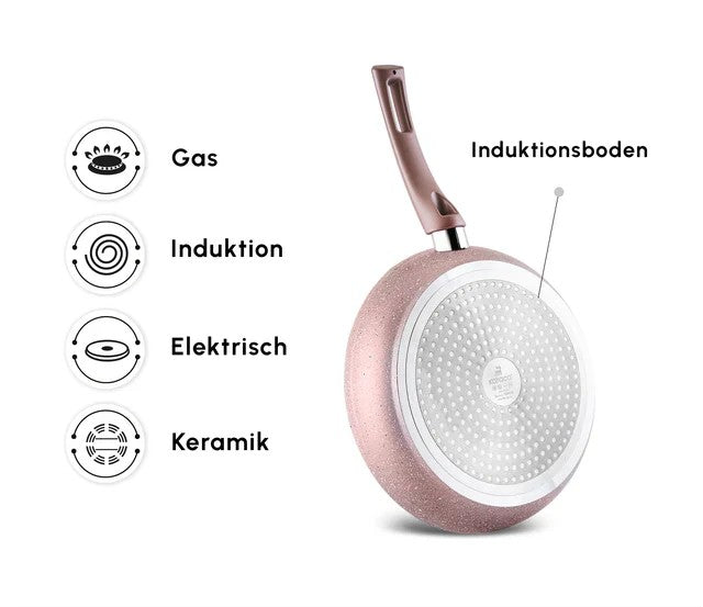 Featuring a non-stick, scratch-resistant surface, these pans allow for healthy cooking with minimal oil and effortless clean-up. The biogranit construction ensures even heat distribution, while the induction-compatible base works on all stovetops for maximum versatility.