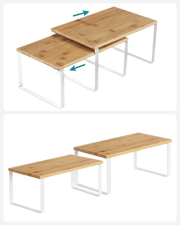 - [What’s in the Box] 4 stylish kitchen cupboard organisers that allow you to stack them, expand them, or separate them into different places, and a great idea to maximise your cabinet or counter space