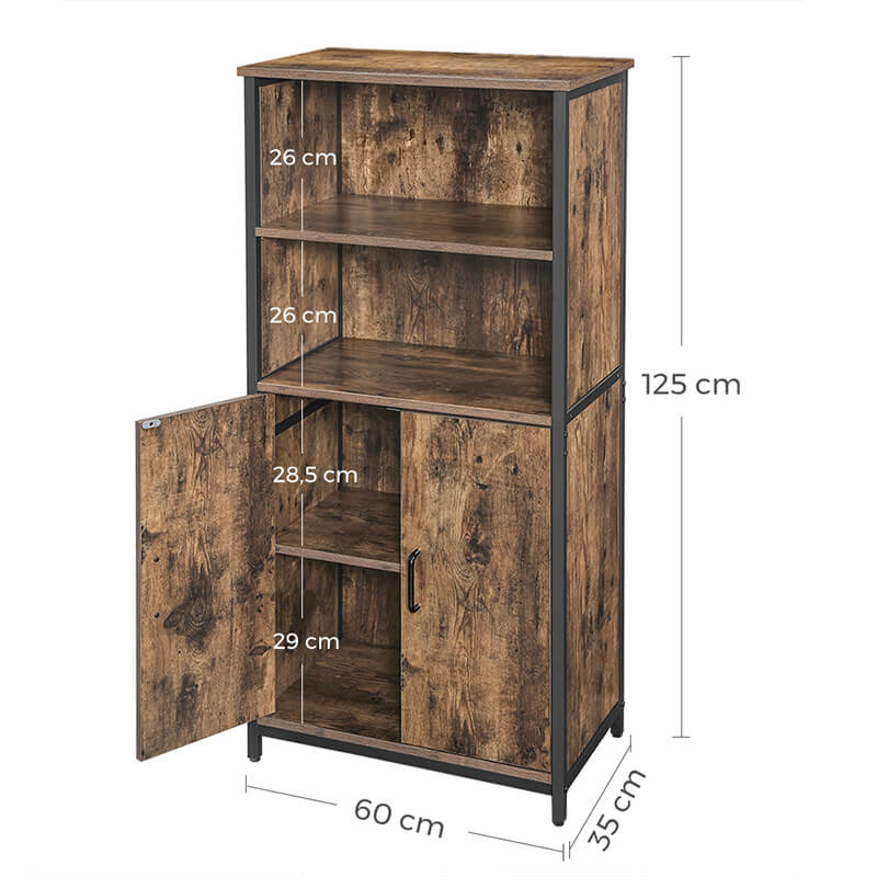 - Beautiful lots of space: If mess gets out of hand, then stow items around here and there on this 60 x 35 x 125 cm bookcase. Books, decorations, kitchen utensils or office accessories can be stored in the two open compartments and on the two shelves behind the doors.