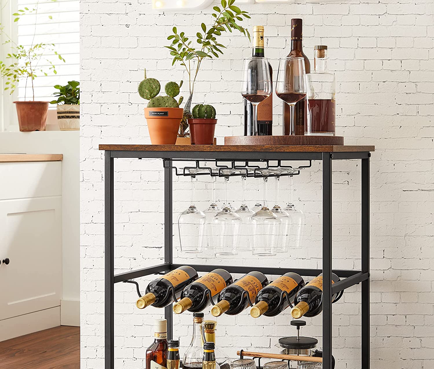 - [A practical aid...] In the kitchen, living room, dining room or balcony? Place glasses and bottles on this cart to save space and better enjoy a party or barbecue with your friends