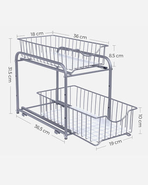 - [Versatile] Use this organiser to organise your items, create a convenient place under the sink for washing-up liquid, or use it as a rust-proof bathroom shelf for soaps and toiletries. A high to versatility