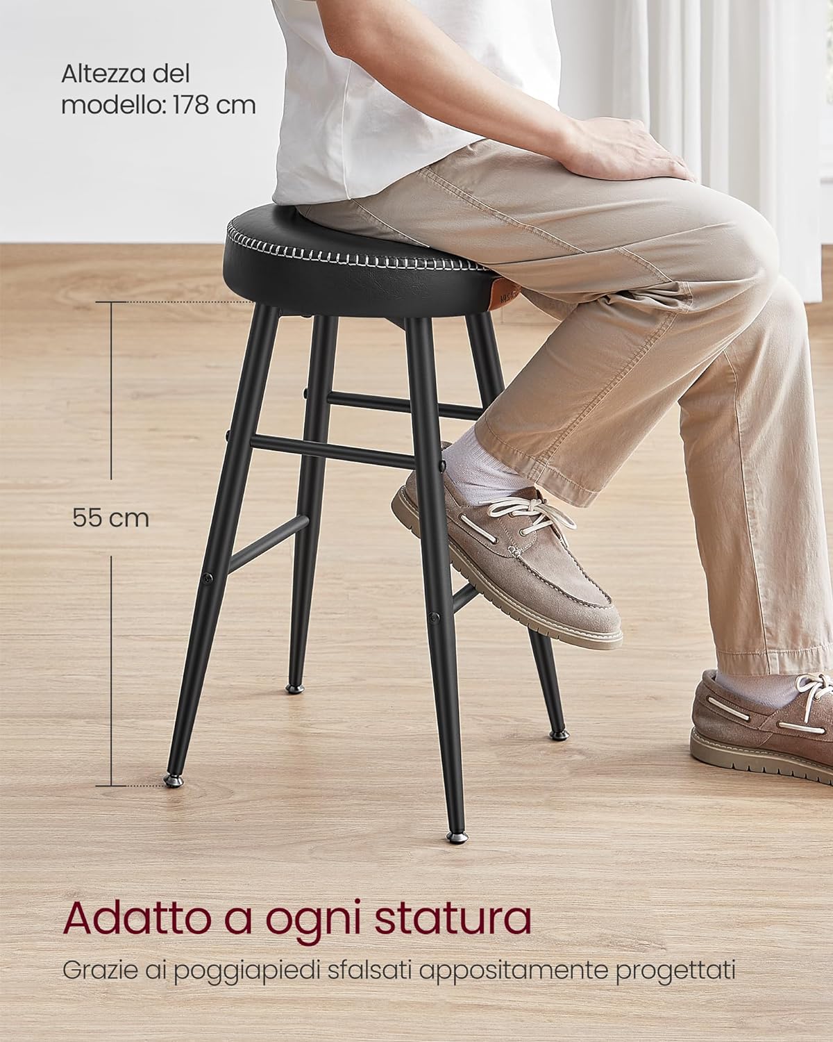 [Enhance Your Space] Witness the blend of synthetic leather, refined stitching, and sleek tapered legs in these bar stools from the VASAGLE EKHO Collection, a tangible homage to the spirit of crafts, elevating your home to new heights of sophistication