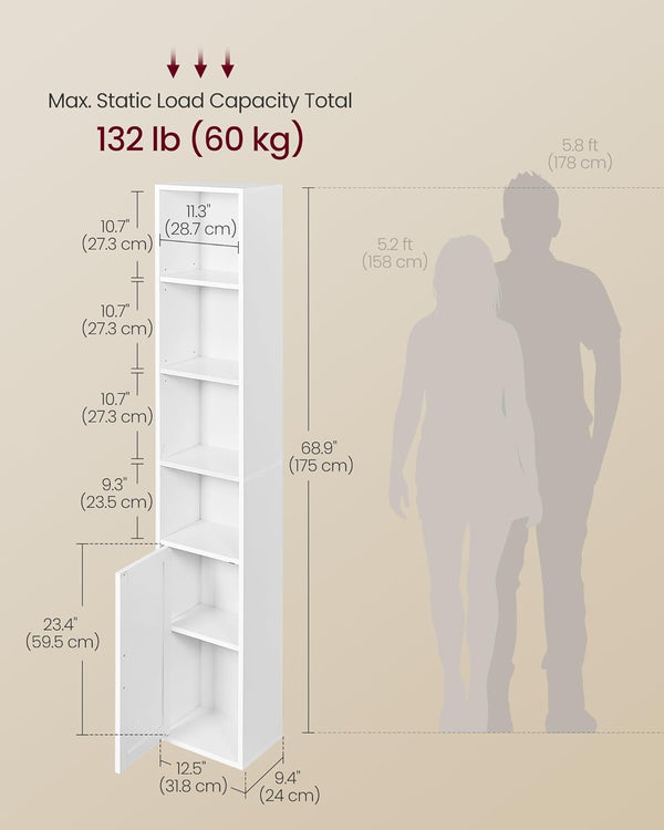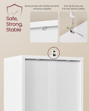 - Sturdy and Secure: This durable narrow storage unit, crafted from particleboard and MDF, supports 10 kg per shelf. Safety is prioritised with the included anti-tip kit for stability