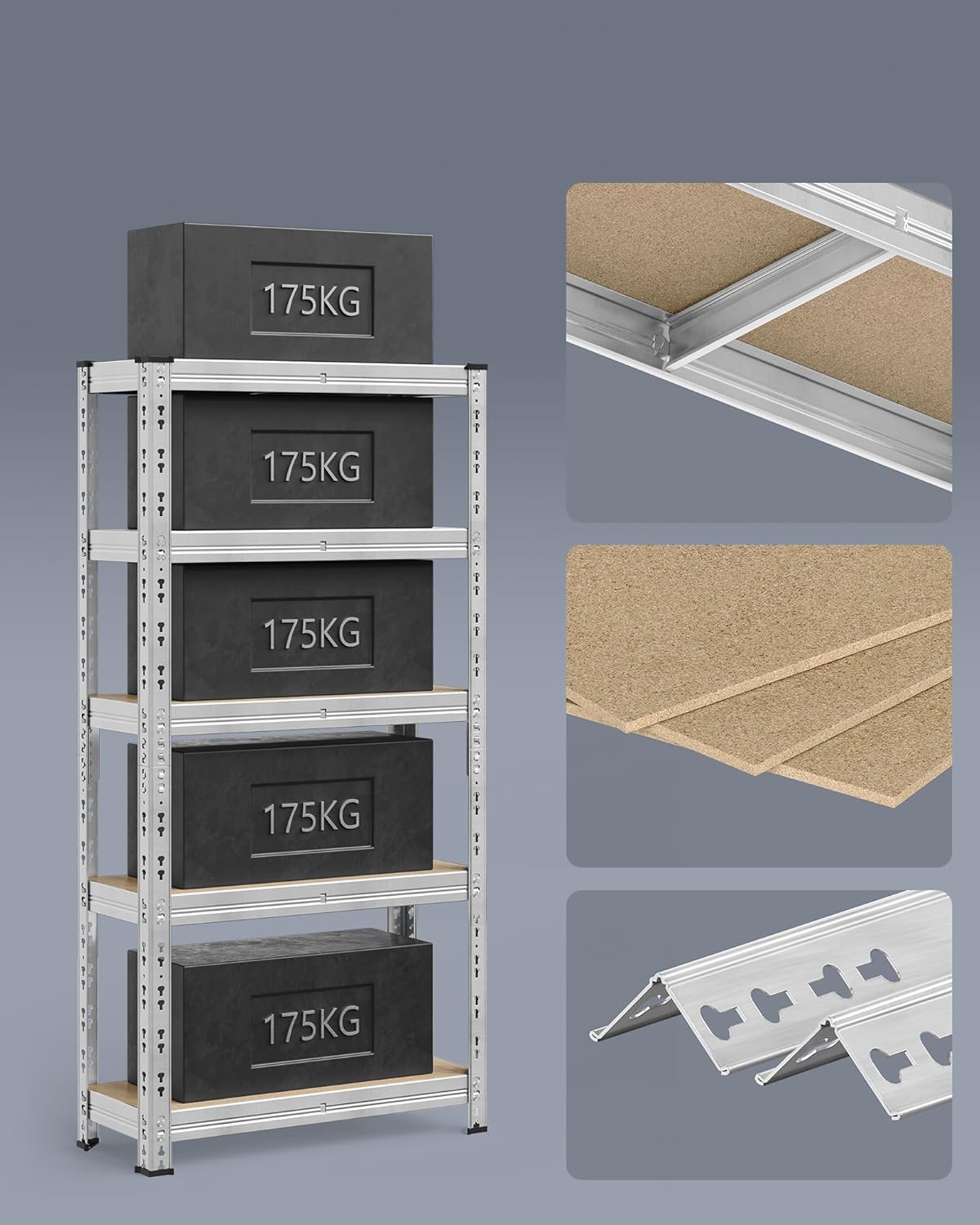 - (Extra Load Capacity) Finished with quality steel and MDF board. Each shelf has a load capacity of 395.3 lbs (175 kg), and a total load capacity of 185.3 lbs (875 kg)