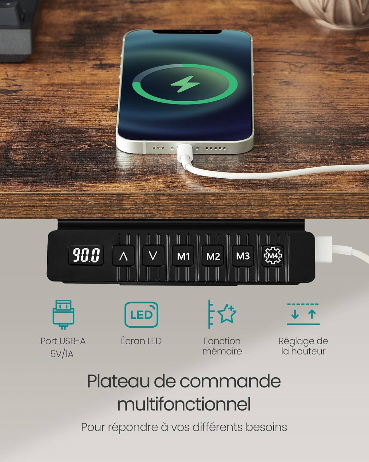 - Good workmanship: With its sturdy steel frame and thick tabletop, this table can bear loads of up to 70 kg. High-quality motor for smooth and quiet adjustment (< 48 dB).