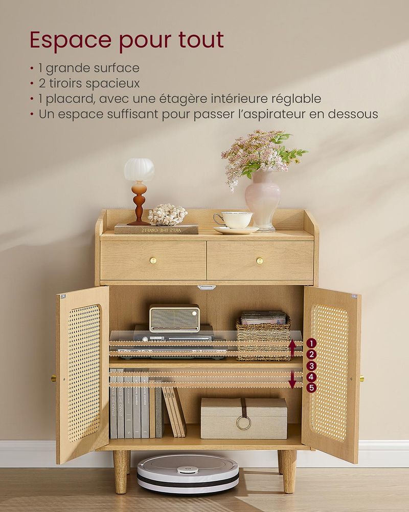 - 【DIVE INTO BOHOMIC HAPPINESS】This sideboard is part of our SONGMICS HOME BOHOVEN collection; it blends natural tones, solid wood legs, and woven elements to create a peaceful haven for the body and mind.