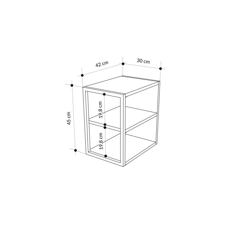 With two open shelves, it offers practical storage for books, boxes, or décor. Its compact size (45 × 42 × 30 cm) makes it ideal as a bedside table, sofa side table, or small storage unit.