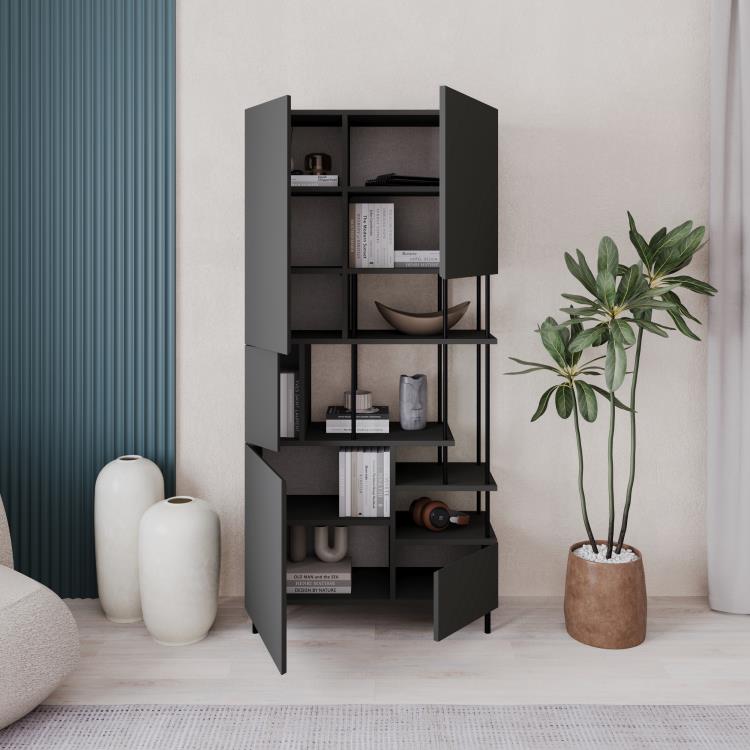 Upgrade your living space with this modern tall bookcase, combining closed cabinets and open shelving for versatile storage and display. Standing at 175.4 cm high, it features a stylish anthracite finish with clean lines and sleek metal legs. The mix of closed compartments and open shelves makes it perfect for storing books, displaying decor, or organizing essentials. Ideal for living rooms, offices, or study areas, this bookcase blends functionality with modern elegance.