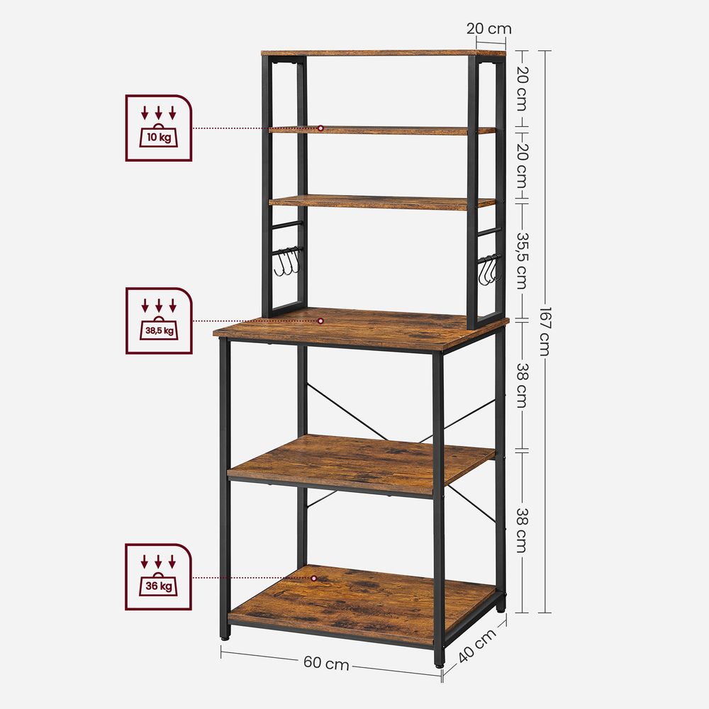 - 【SPACE-SAVING】Measuring 40 x 60 x 167 cm, this 6-tier kitchen shelf fits perfectly in small kitchens and helps you maximise your space, working especially well as a mini coffee bar