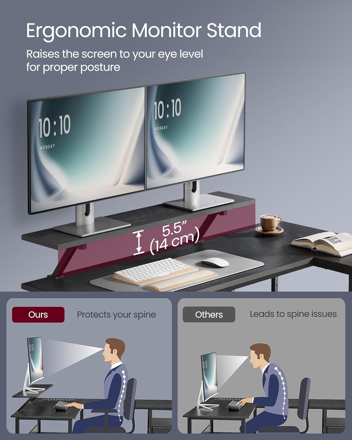 - 【STURDY & ROBUST】Constructed with a steel frame and reinforced crossbars, this computer desk can support up to 50 kg on the tabletop and 20 kg on the monitor stand. Work with peace of mind!