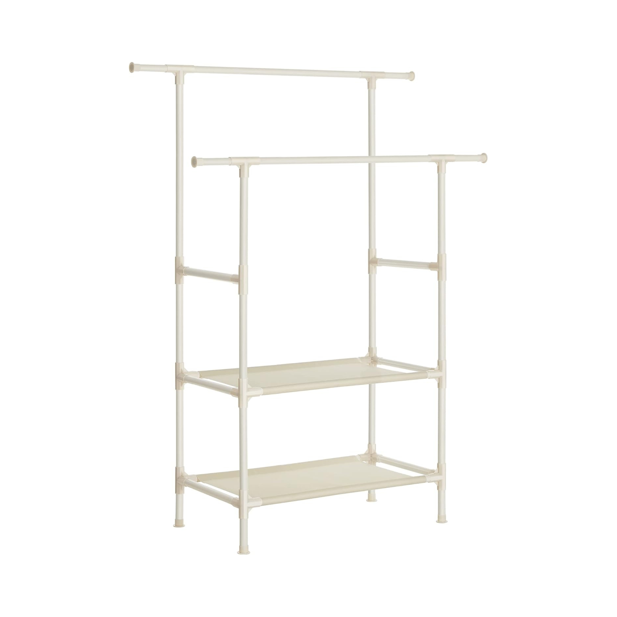 - [More Storage] With 2 bars at the top, 2 shelves at the bottom and 2 bars on the sides, you can hang your clothes, organize your bags and shoes, and store your scarves. Everything is ready for a stress-free morning!