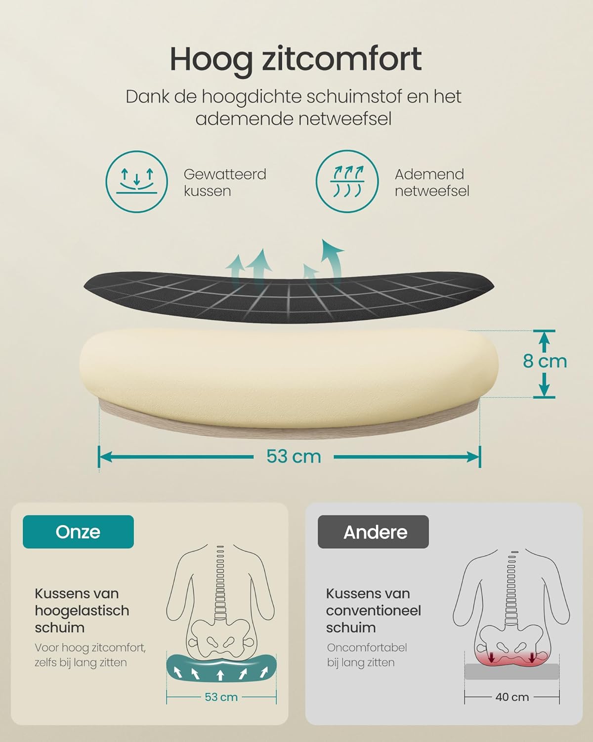 - [Comfortable sitting] The 8 cm thick high-quality foam and the 53 cm soft seat cushion relieve pressure on the hips when working all day; The mesh fabric is breathable, so you will not sweat even after prolonged sitting
