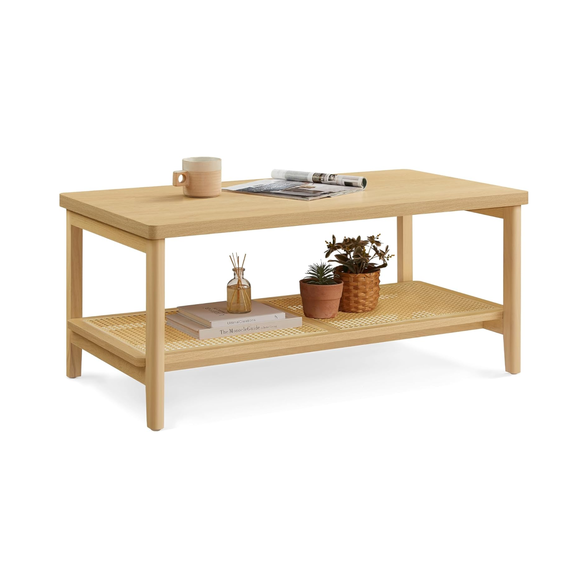 [Robust and Reliable] With a premium MDF tabletop that's strong enough to hold up to 50 kg, and a plastic rattan shelf that supports up to 40 kg, this coffee table is a reliable addition to your space. Feel free to display your books or decorations on it!