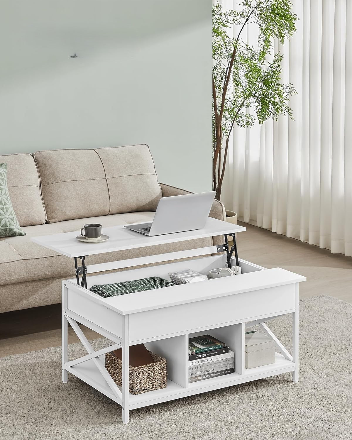 Lift the top - Lift the top of this coffee table forward. So you can work comfortably at home, surf the Internet, enjoy a delicious meal or tinker while sitting on the sofa.