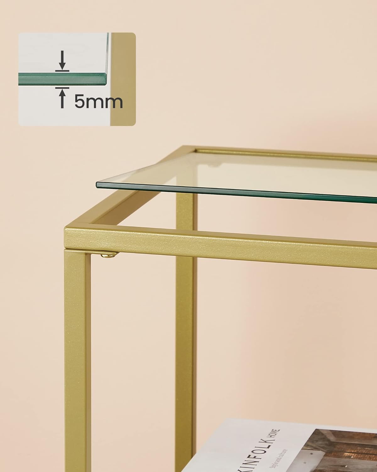 LUXURY & PRACTICAL: Gold coloured frame and chic tempered glass (100x35x80cm) create a luxurious and practical console table. The asymmetrical shelves not only give you plenty of space, but also add a unique charm to your room