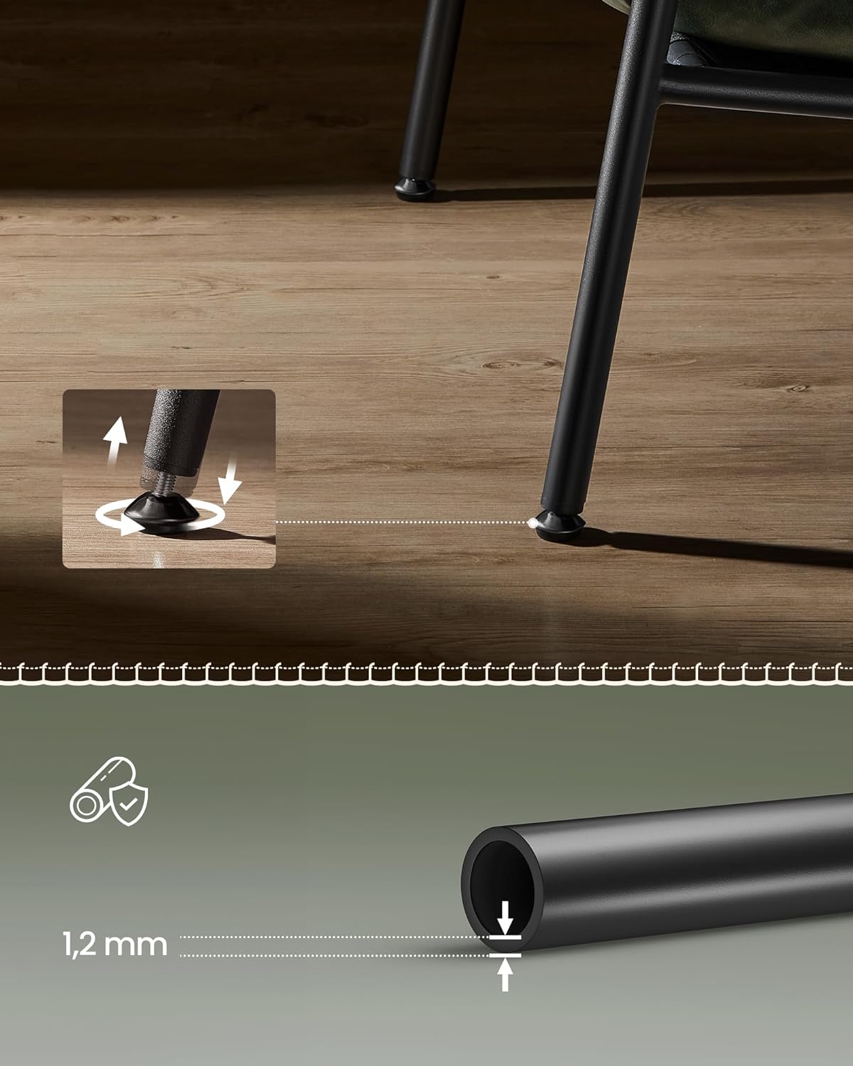 [A Confidence Envelope] The inclined steel structure of this reading chair provides a stable and firm seat. Capable of supporting up to 300 pounds, this accent chair invites you to relax with the certainty of being well seated