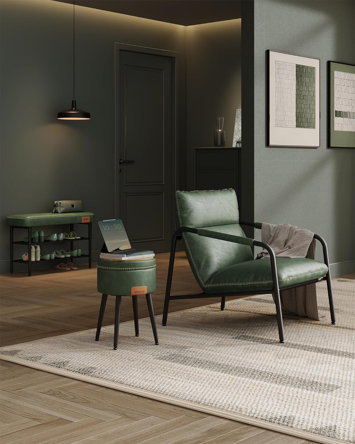 [Style speaks to volumes] This accent chair from the VASAGLE EKHO collection combines PU and refined stitching. The sleek steel frame complements its striking lines, evoking the minimalist philosophy of mid-century modern style