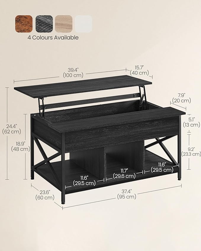 - [Elevate the Look] The black steel legs exude cool, industrial vibes, the charcoal gray tabletop warms up the space, and the X-shaped bars add a pop of personality. This lift-top coffee table will surely spruce up your living space