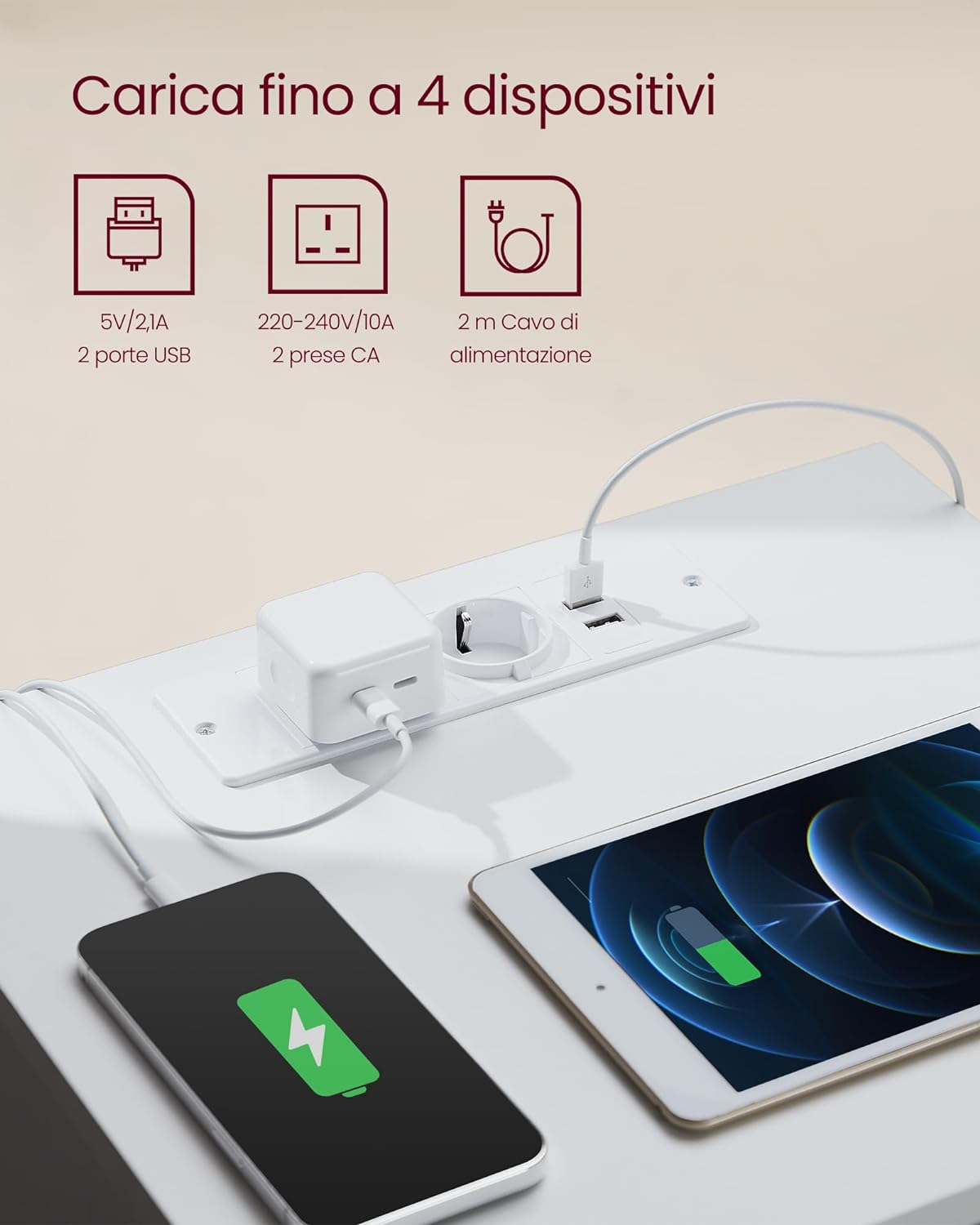 - [Convenient Charging Station] With a built-in power strip that includes 2 AC outlets and 2 USB ports, plus a 2m extension cord, you can power your essential devices, from your cell phone and tablet to your lamp and laptop, right from your bed