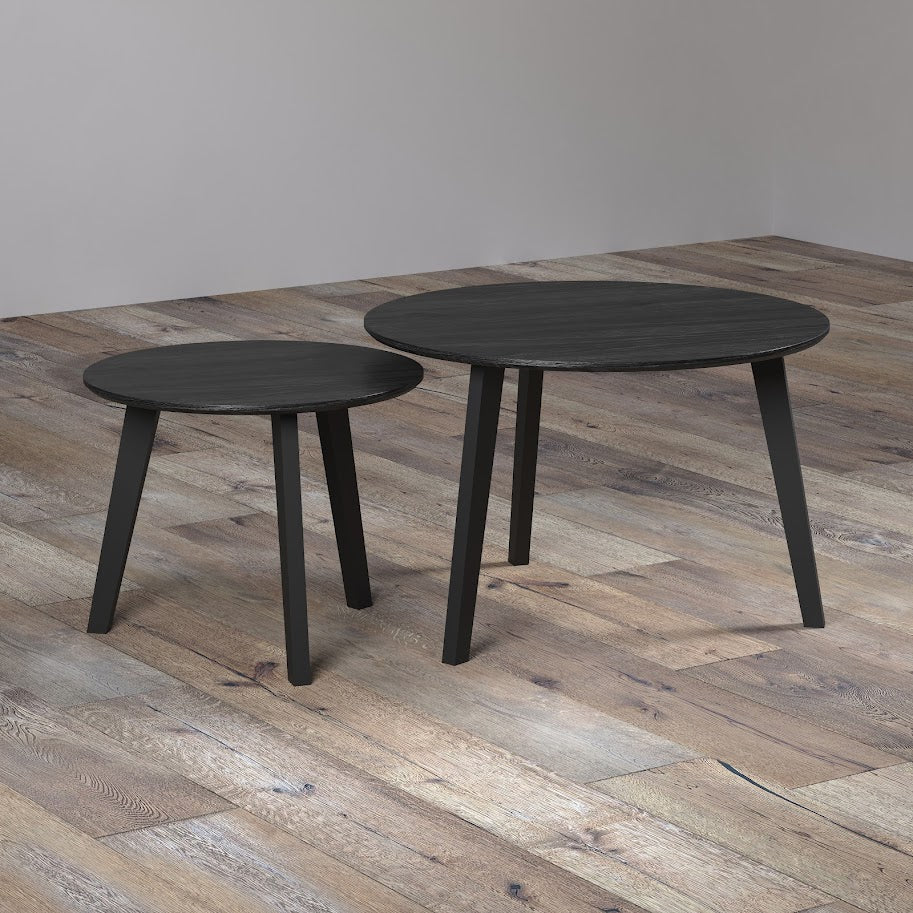 Modern, minimalist, and multifunctional – the Ronin 2-Piece Round Coffee Table Set brings sleek elegance to any living space. This stylish duo includes one larger and one smaller table, designed to nest perfectly or be used separately for flexible functionality. Crafted with a rich black wood-look finish and sturdy tapered legs, these tables are ideal for displaying décor, holding drinks, or creating a dynamic centerpiece.