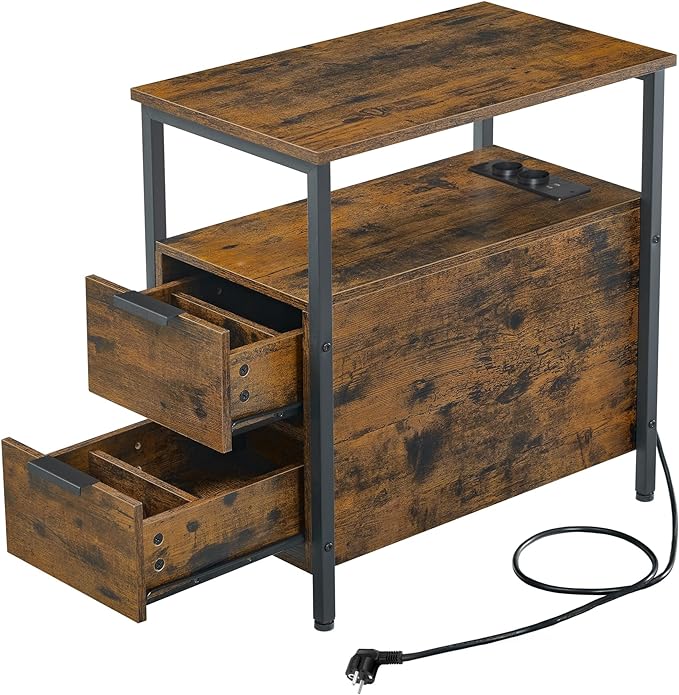 - [Plenty of Storage Space] Our compact side table offers versatile storage options - 2 drawers with removable dividers, 2 open shelves for easy access and even a magazine holder on the back