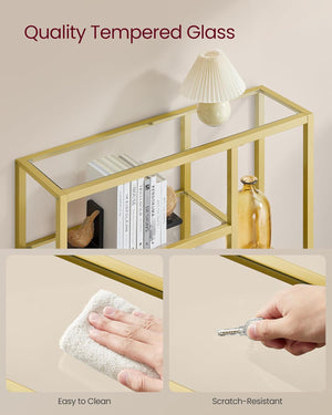 - 【STRONG. SECURE. STABLE】Crafted with robust tempered glass and steel, this storage shelf boasts a solid structure and can hold up to 45 kg. The included anti-tip kit ensures safety, while 4 adjustable feet enhance stability