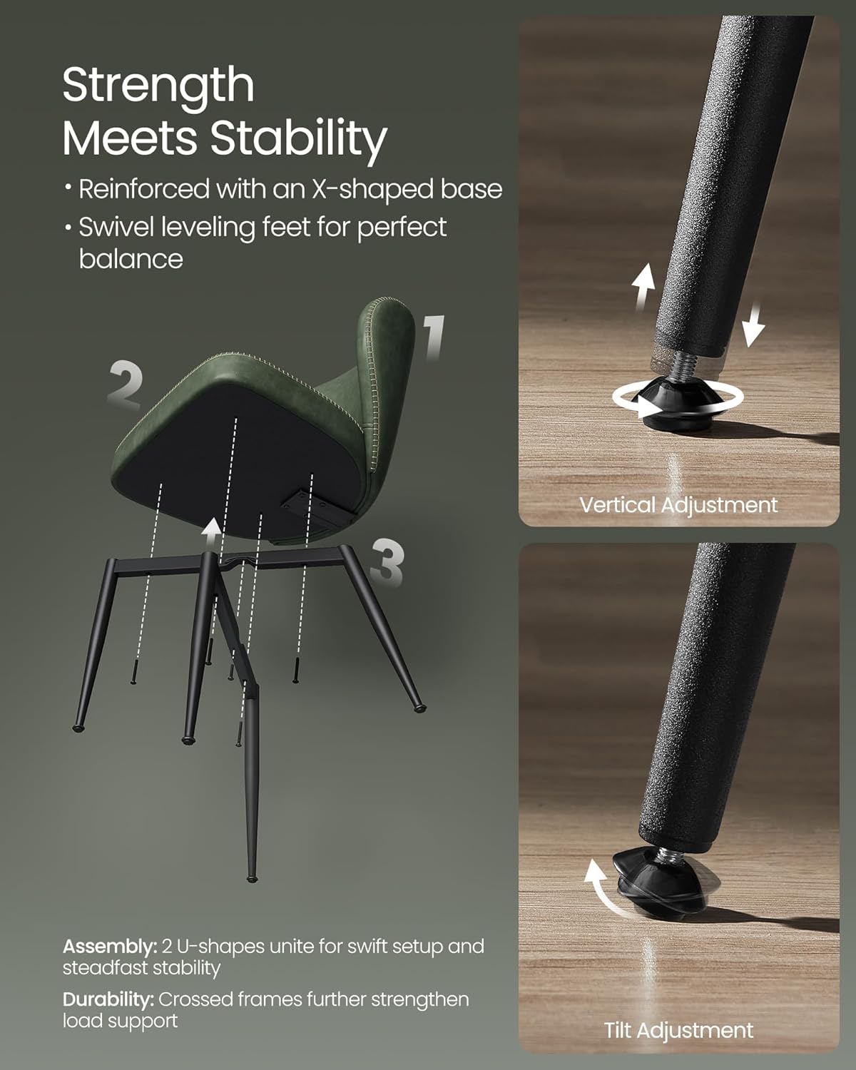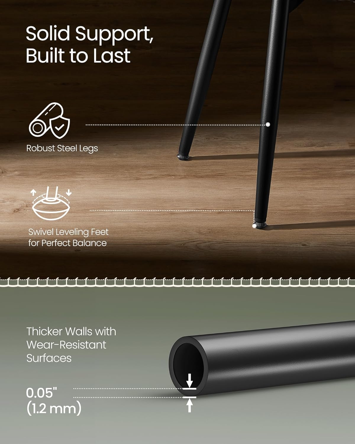 - [Strength Meets Stability] The robust steel legs of these kitchen chairs form a firm foundation, effortlessly supporting up to 265 lb. The swivel levelling feet ensure stability, even on slightly uneven surfaces, and prevent floor scratches