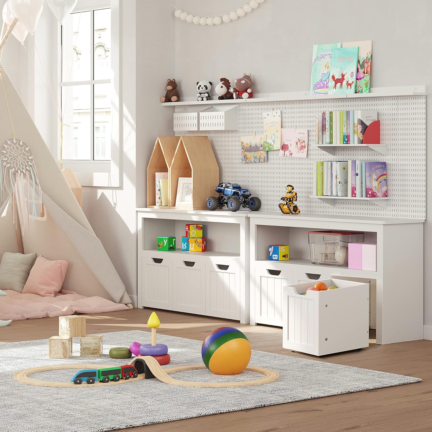 - Child-friendly design: your child can easily remove the 3 boxes - each with 4 wheels - the cut-outs help to avoid pinching their hands; the children's shelf is 60 cm high and your child can easily reach their toys