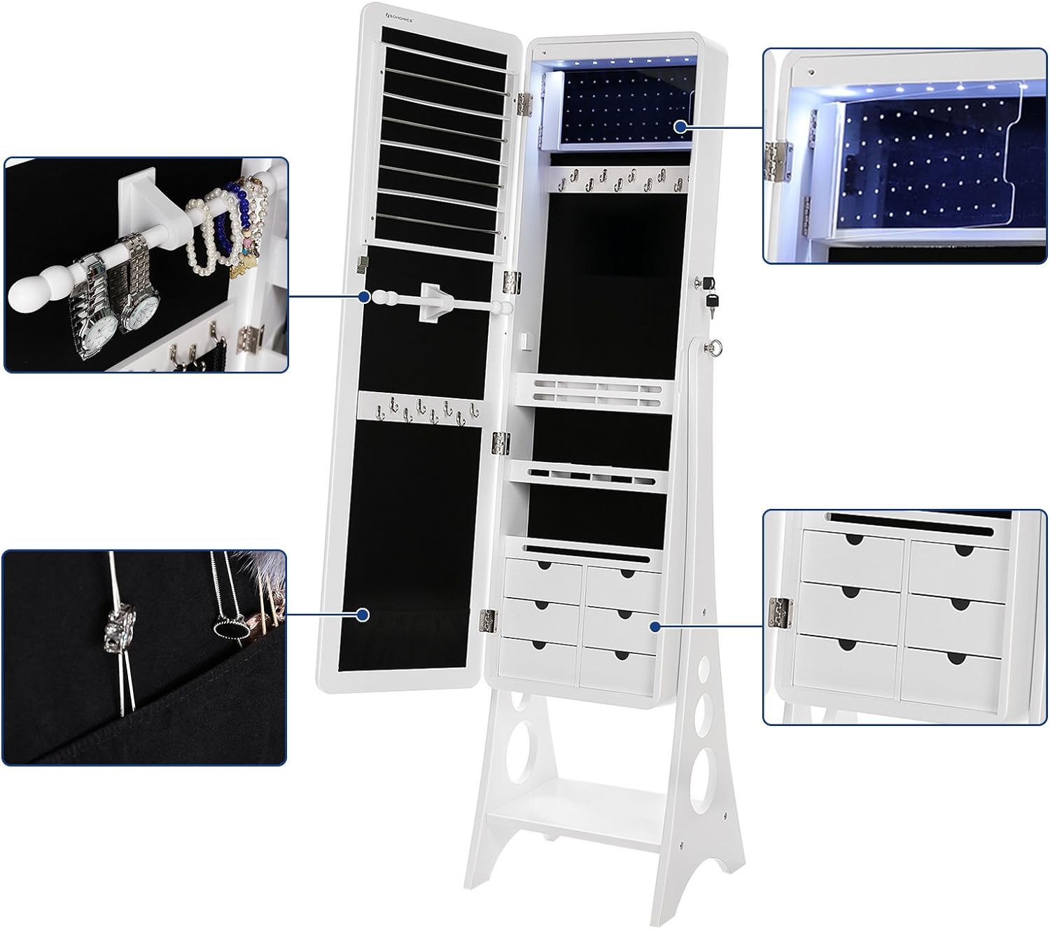 LED light and lockable cabinet – 8 LED lights (3 AAA batteries not included) helps you choose your jewellery quickly; the lock secures your jewellery and keeps children away from it