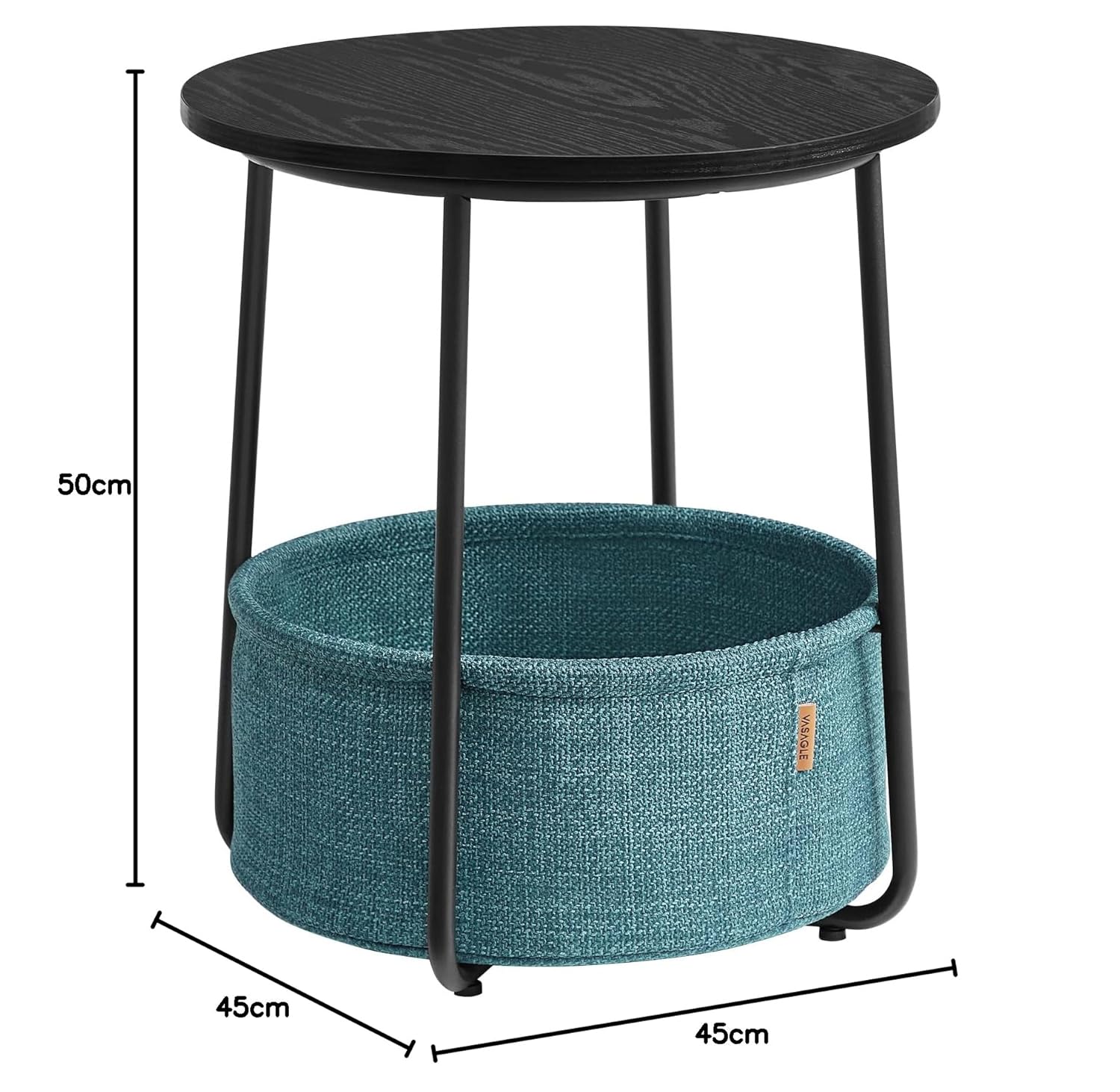 - [Fits Small Spaces] The 45 x 50 cm (Dia. x H) end table with 39.6 x 18.2 cm (Dia. x H) basket fits small spaces. As a side table in the living room or as a bedside table in the bedroom, it’s not bulky but offers plenty of storage space for your items
