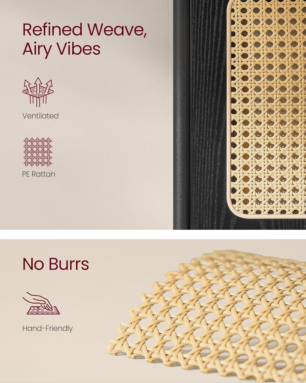 [Simple and Natural] The combination of linear steel tubes and rattan-like elements creates this simple bookshelf that exudes a natural and welcoming touch, adding a unique twist to any corner of your home