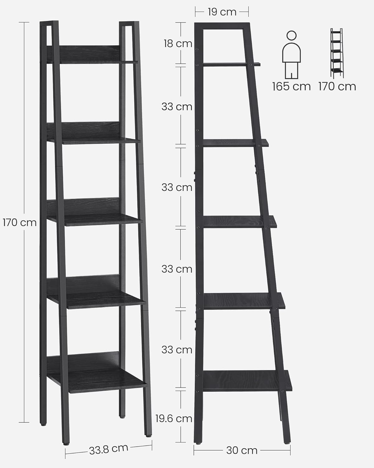 [Narrow Shelf for Small Spaces] This bookshelf takes up only 30 x 33.8 cm of floor space and makes the most of vertical space with its 170 cm height and 5 shelves. This space-saving ladder shelf works like a charm in small spaces