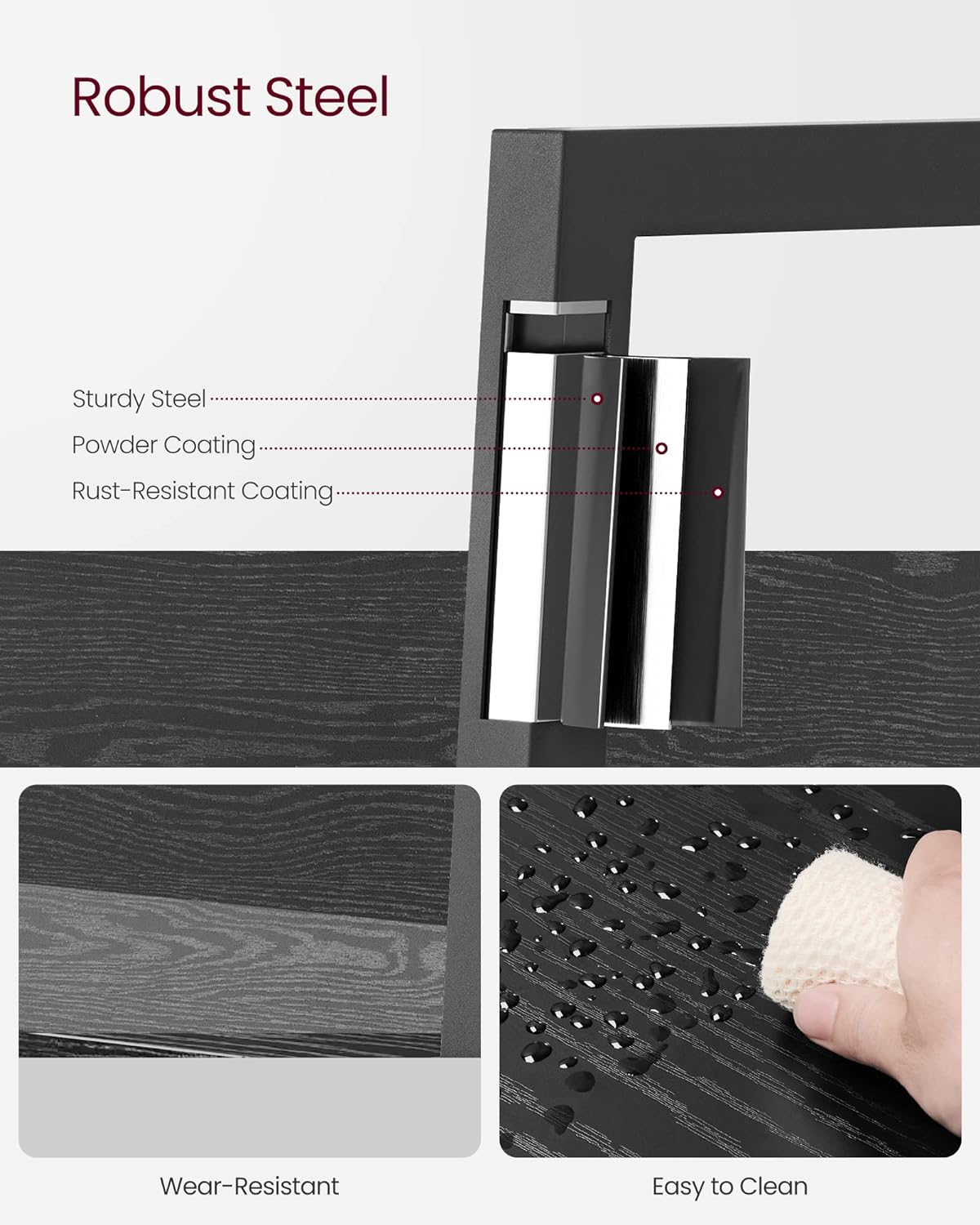 [Sturdy & Durable] Crafted with sturdy steel and high-quality particleboard, this storage rack can hold up to 50 kg in total, providing strong support for your books and collections. This sturdy shelf is built to last and will serve you for years to come