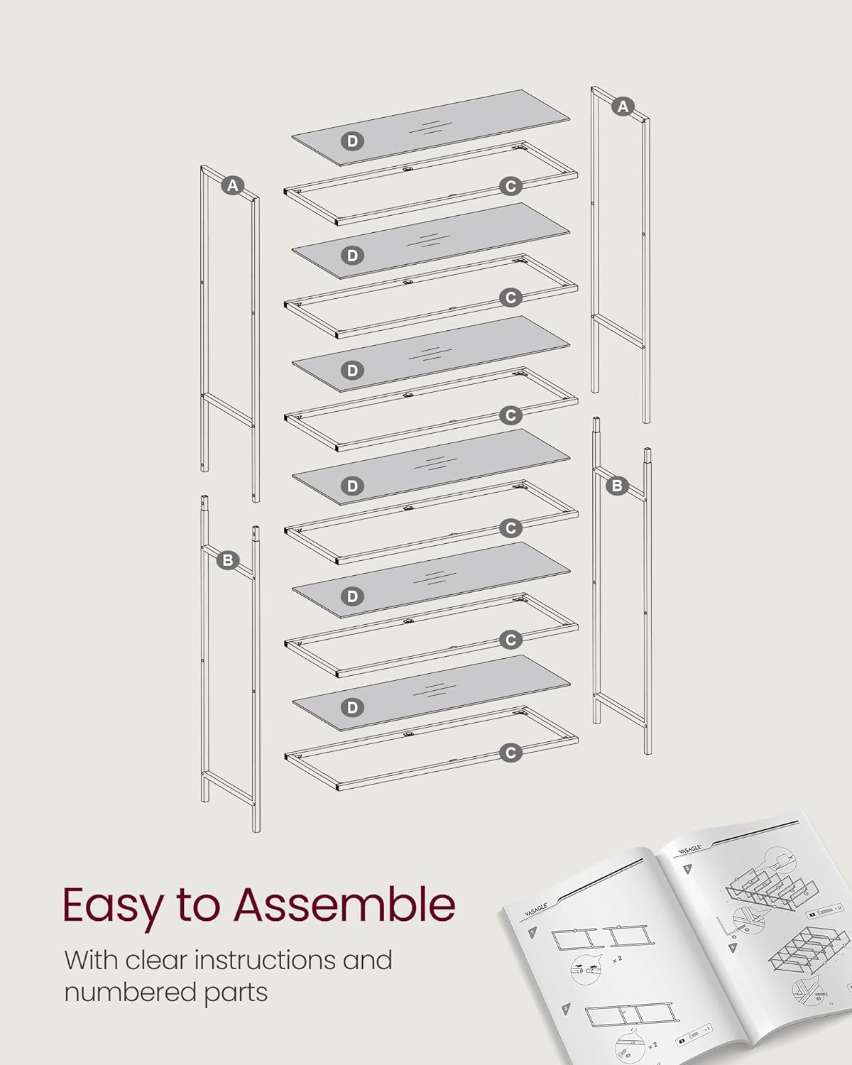 - [Easy Assembly] Thanks to the illustrated instructions and numbered pieces, you can quickly assemble this bookcase