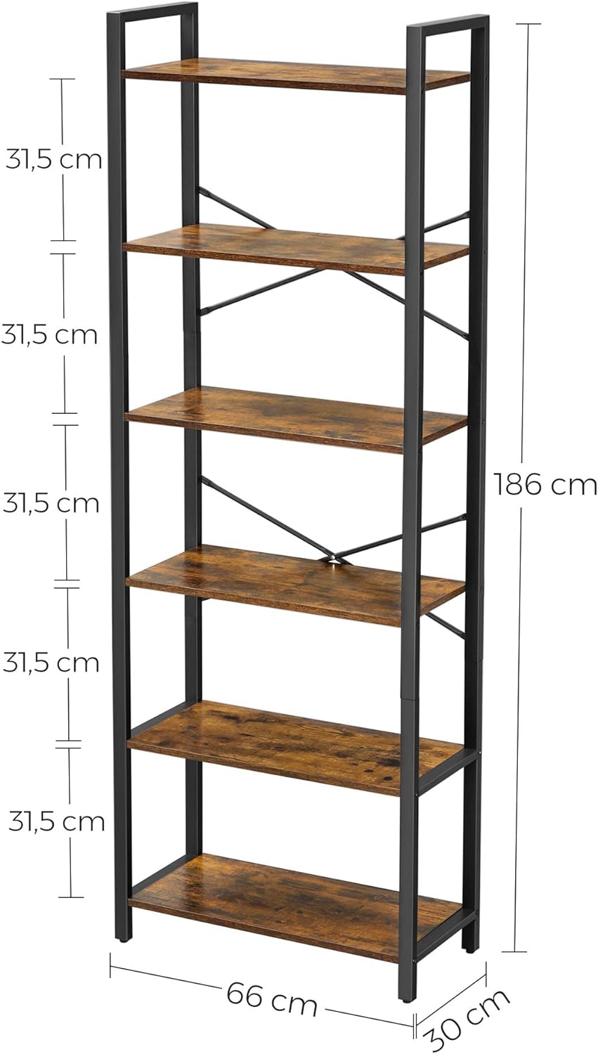With plenty of storage space and for different spaces: With six open shelves, this 30 x 66 x 186 cm shelf offers plenty of storage space to display your favourite books, decorations and plants in the living room, bedroom or study.