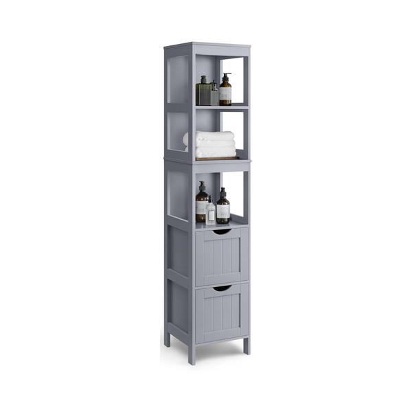 - [In Sight or Out of Sight?] It’s up to you! This clever bathroom cabinet boasts 3 super-handy open shelves for your oft-used items, while 2 spacious drawers to hide not-so-pretty bath items (we're looking at you, extra toilet paper)