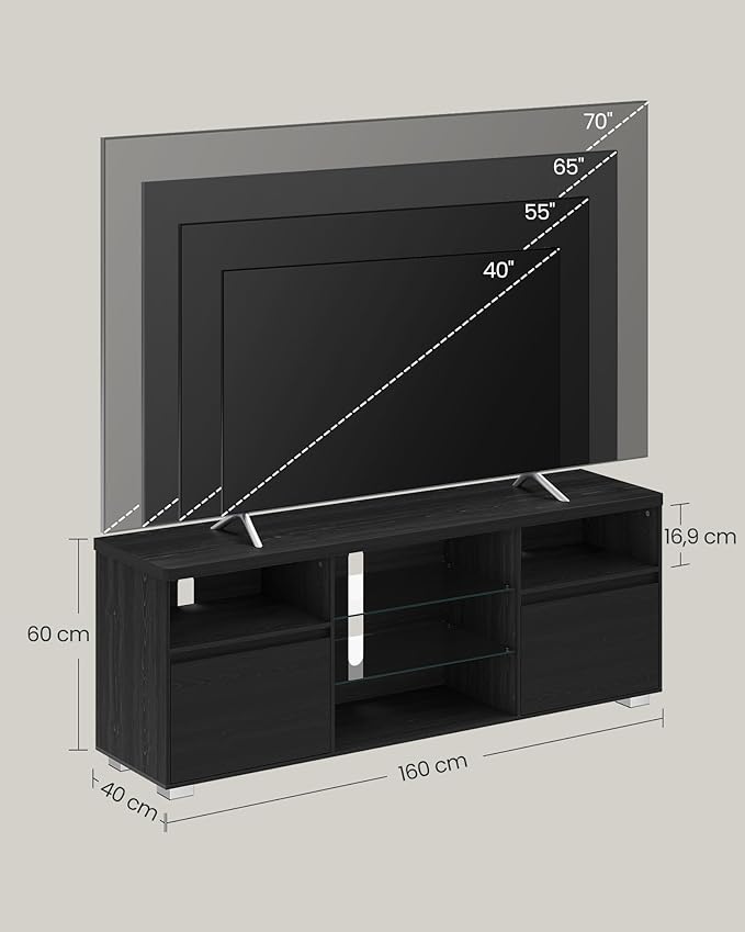 - Perfect for any home: This 40 x 160 x 60 cm TV stand with lighting for TVs up to 70 inches can be easily integrated into living rooms, bedrooms or home theaters. Enjoy your movie night and playtime