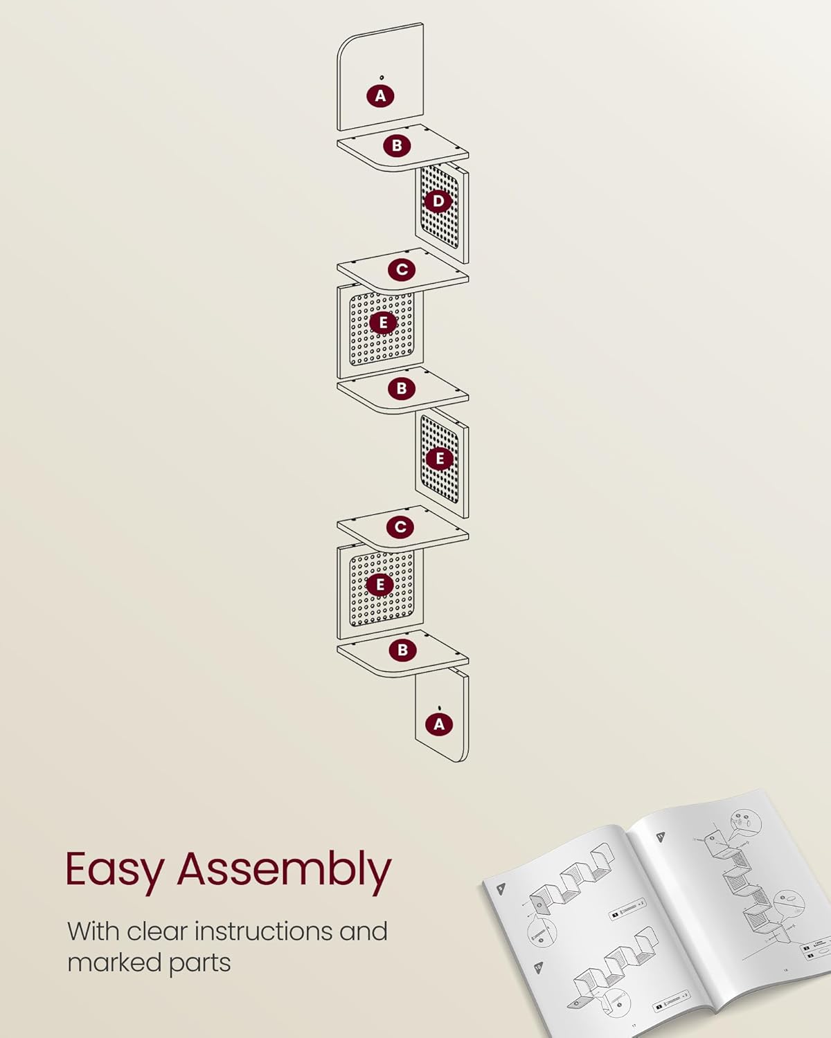 - [Small Space Game-Changer] Transform small spaces into a chic and organised haven with this 5-tier corner wall shelf. Its slim 20 x 20 x 126 cm figure occupies little room yet offers ample display space. Plus, it doesn't occupy any valuable floor space