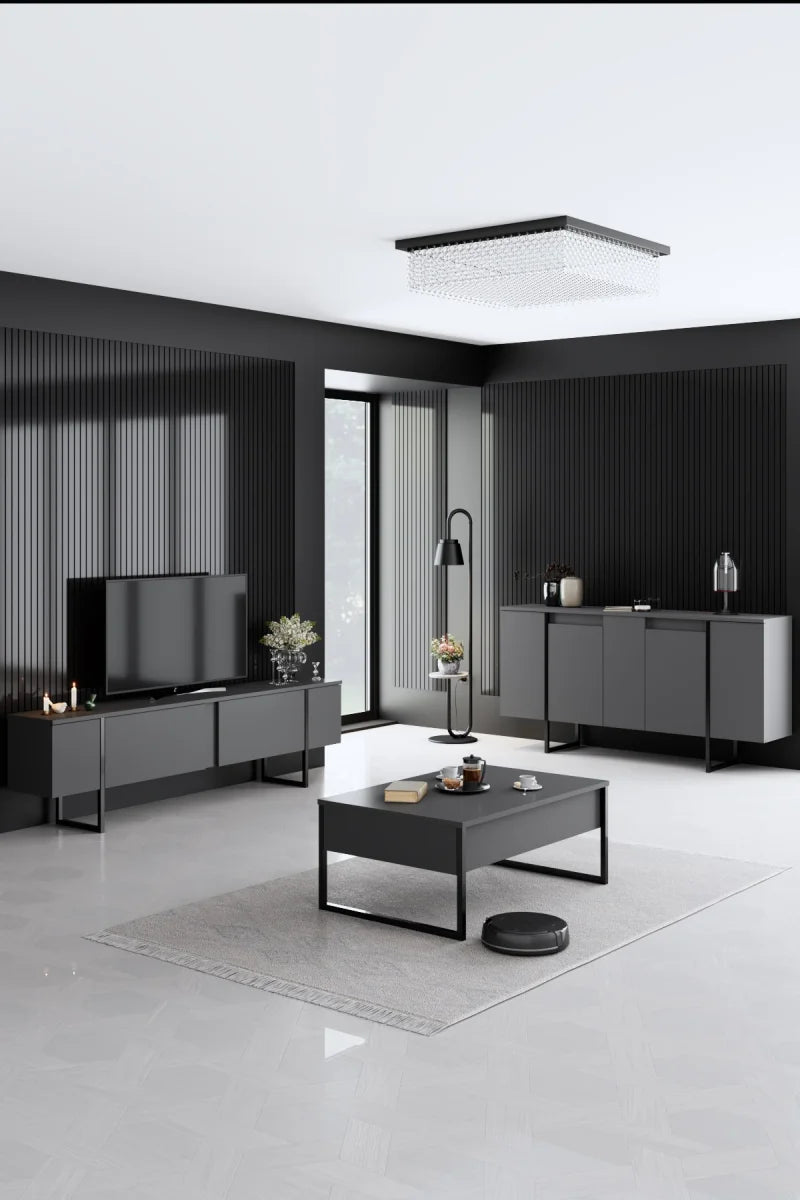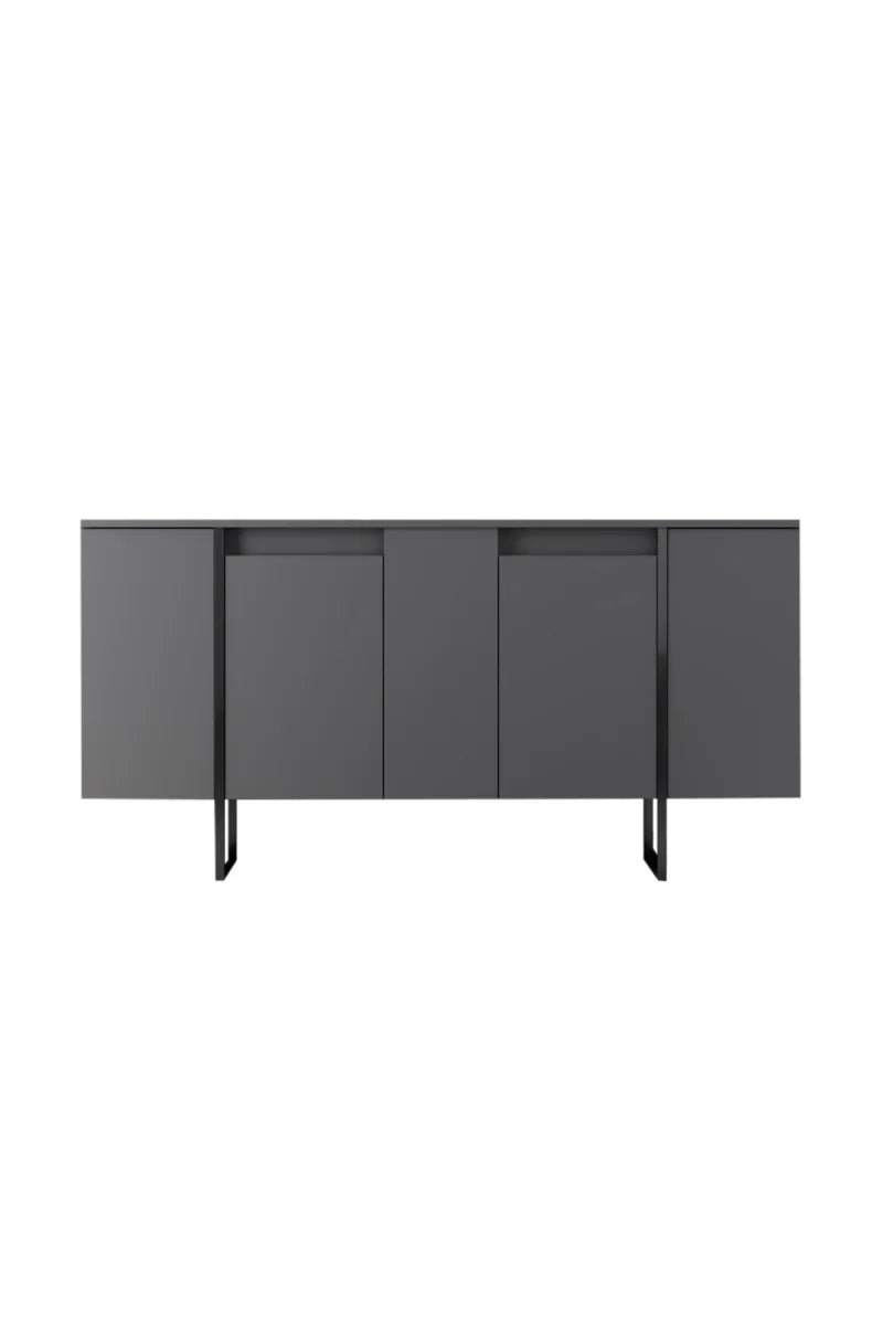 Elevate your home storage with a piece that balances bold geometry with functional elegance. This 160 cm sideboard features a streamlined silhouette, characterized by its unique inset handle detail and integrated black steel supports that extend from the floor to the top surface. Its slim 35 cm depth makes it an ideal solution for narrower spaces like entryways or corridors without sacrificing internal storage capacity.
