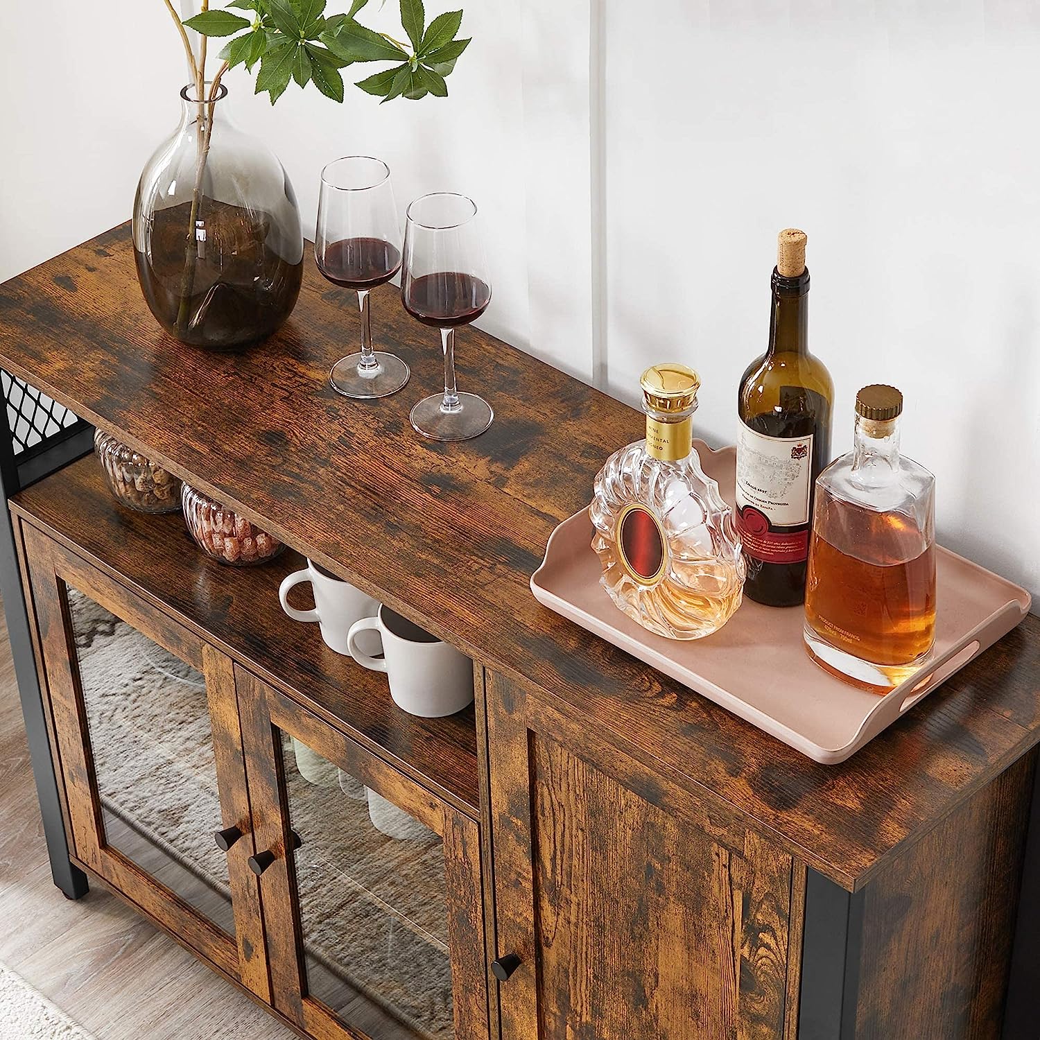 - [Bring More Style] Vintage brown colour combined with classic black elements will add an attractive touch to your home. This storage cabinet will be the centre of attention in any room