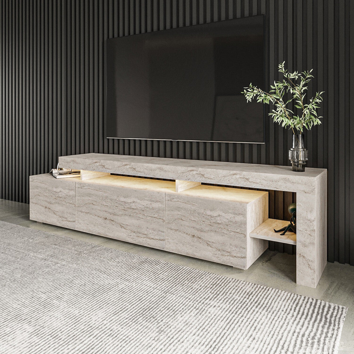 It offers ample space for your television and other devices. The sophisticated beige color, combined with the built-in LED lighting, creates a warm atmosphere, ideal for your living room or bedroom.