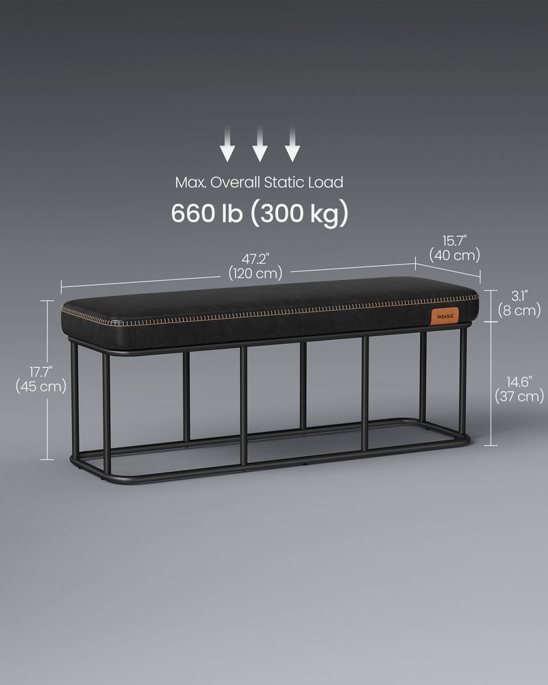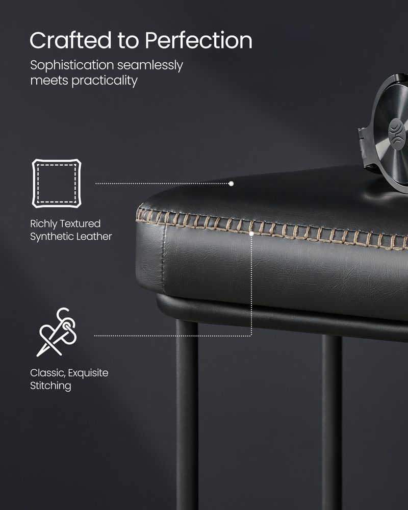[Enhance Your Space] Discover the VASAGLE EKHO Collection entryway bench, where synthetic leather meets refined stitching. Its subtle curved edges prioritize safety, while sleek metal lines contribute to the illusion of added space