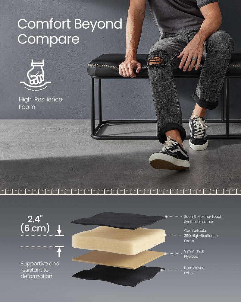 [Comfort at Every Sit] Glide your hand over the smooth cover, then sink into the supportive 2.4" (6 cm) thick, 25D high-resilience foam. This padded bench provides a comfortable seat that endures, standing the test of time without deformation