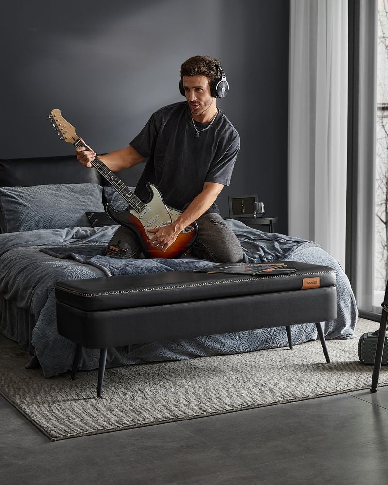 - [Comfort Meets Convenience] Glide your hand over the smooth, easy-to-clean cover, then sink into the 2.4" (6 cm) thick, supportive 25D high-resilience foam that resists deformation. This storage bench offers both a cozy seat and effortless upkeep